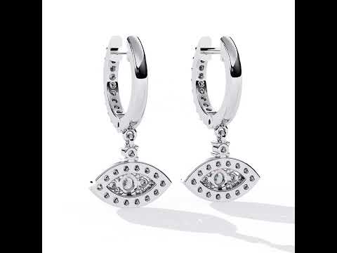 These evil eye diamond hoop earrings combine modern elegance with symbolic charm. Crafted with a sleek hoop silhouette lined with shimmering stones, the design is enhanced by a dazzling evil eye drop pendant that adds brilliance and meaning. The delicate sparkle catches the light beautifully, making them perfect for both everyday sophistication and special occasions. Lightweight yet luxurious, these earrings bring a refined statement to any outfit while symbolizing protection and positive energy.