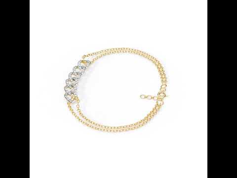 This stunning gold bracelet showcases a series of interlocking circular links beautifully accented with shimmering diamonds for a refined, luxurious look. Crafted with a delicate double-chain design and finished with a secure lobster clasp, it offers both elegance and comfort for everyday wear or special occasions. The blend of warm gold tones and radiant diamond detailing creates a modern yet timeless statement piece. Perfect for gifting or personal styling, this bracelet effortlessly enhances both casual and formal ensembles.