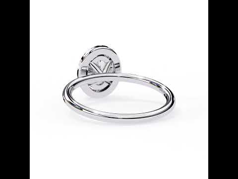 This elegant oval cut diamond halo engagement ring showcases a radiant center stone encircled by a shimmering halo of round diamonds, creating exceptional sparkle and depth. Crafted in warm yellow gold, the sleek band perfectly complements the brilliance of the oval cut, enhancing its elongated beauty. The halo setting adds dimension and visual impact, making the center diamond appear larger and more luminous. A perfect blend of classic sophistication and modern refinement, this ring is designed to celebrate love with timeless style.