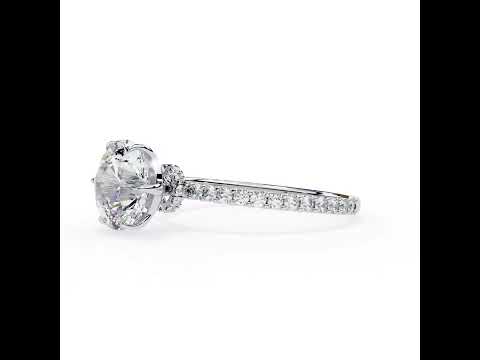 This classic round solitaire pave diamond ring blends timeless elegance with modern brilliance. Featuring a stunning round-cut center diamond secured in a refined prong setting, the ring is accented by a pave-set band that adds continuous sparkle from every angle. Crafted in high-polish white gold, its graceful profile enhances light performance and comfort. Perfect for engagements, anniversaries, or special milestones, this ring symbolizes everlasting love with unmatched sophistication and radiant charm.