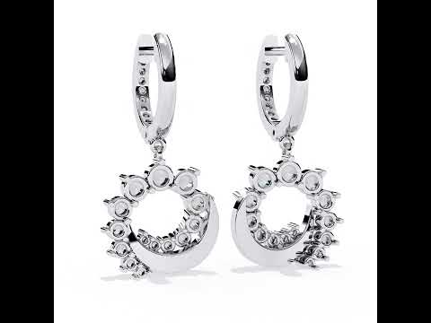 Crescent halo gold drop earrings featuring a polished moon-shaped design accented with sparkling round stones. Elegant and modern, they add graceful movement, radiant shine, and timeless charm to any look.